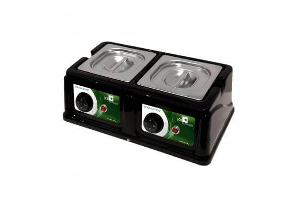 Ogni scioglitore di cioccolato utilizza un sistema a secco per riscaldare i contenitori sul fondo e nei lati, al fine di ottenere una temperatura uniforme del cioccolato.